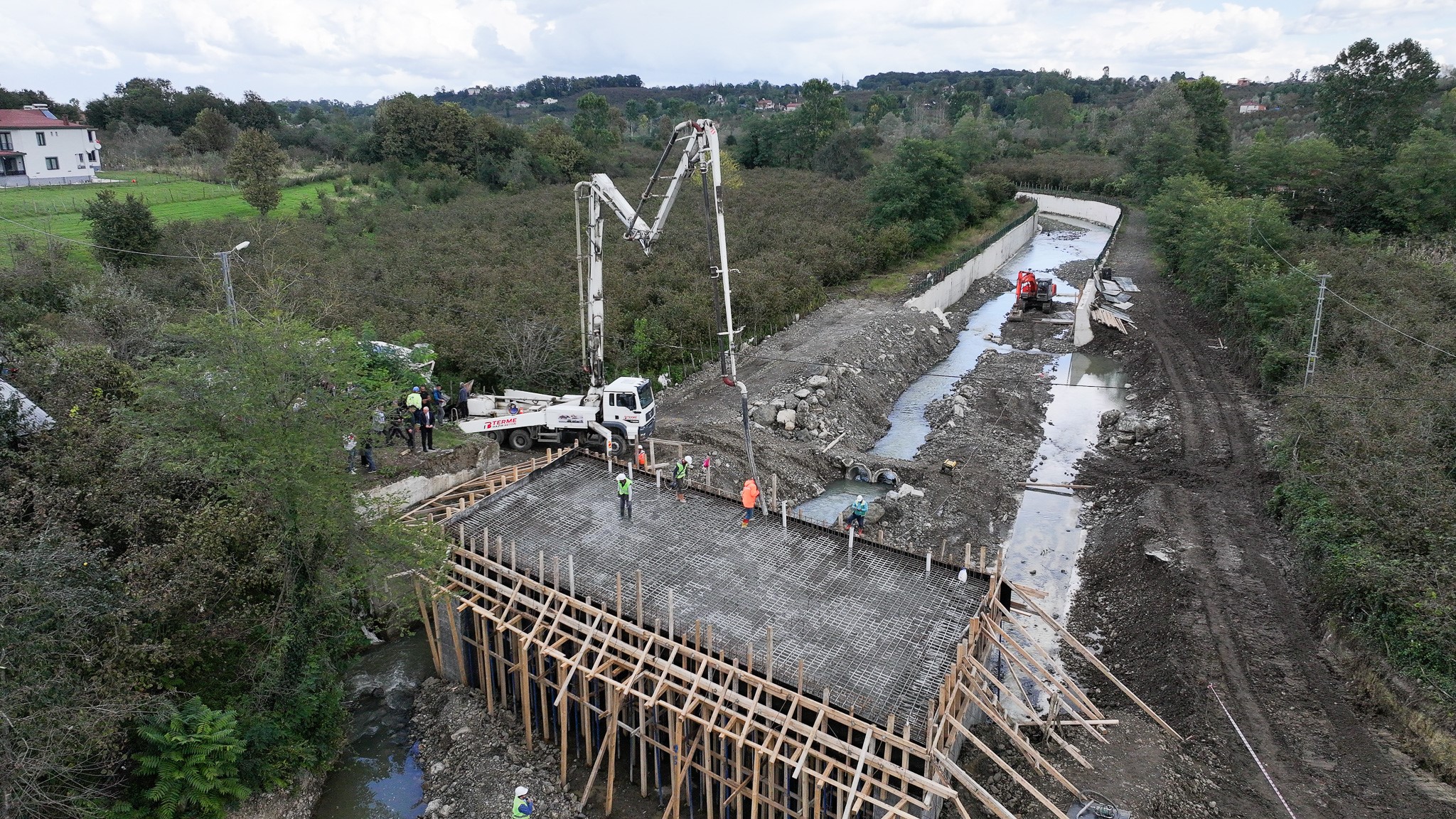 Terme’de yaşanan sel felaketinin ardından yıkılan Bazlamaç Mahallesi Karagöl mevkiindeki köprünün yapımına DSİ tarafından yeniden başlandı. İnşa sürecinin sonuna yaklaşırken köprü çalışmasında incelemede bulunan terme Belediye Başkanı Şenol Kul, çalışmalar hakkında bilgi aldı.