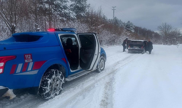 Sinop’ta kar nedeniyle yolda mahsur kalan vatandaşlar jandarma tarafından kurtarıldı.