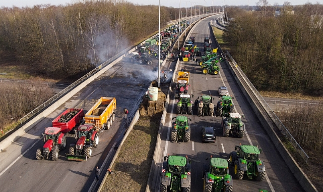 Belçikalı çiftçiler ise, ülkenin güneyindeki otoyolları kapatarak, traktörlerini başkent Brüksel'deki AB Parlamentosu yakınına park etti.