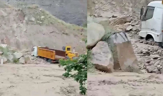 Sağanak ve heyelanın meydana geldiği Uzundere ilçesinde sulama göleti barajının kapakları patladı. Bölgede bulunan taş ocağı sular altında kalırken, çalışanlar büyük korku yaşadı. Su baskını sırasında bazı iş makinaları da sular altında kaldı.