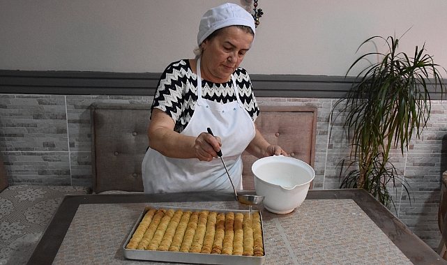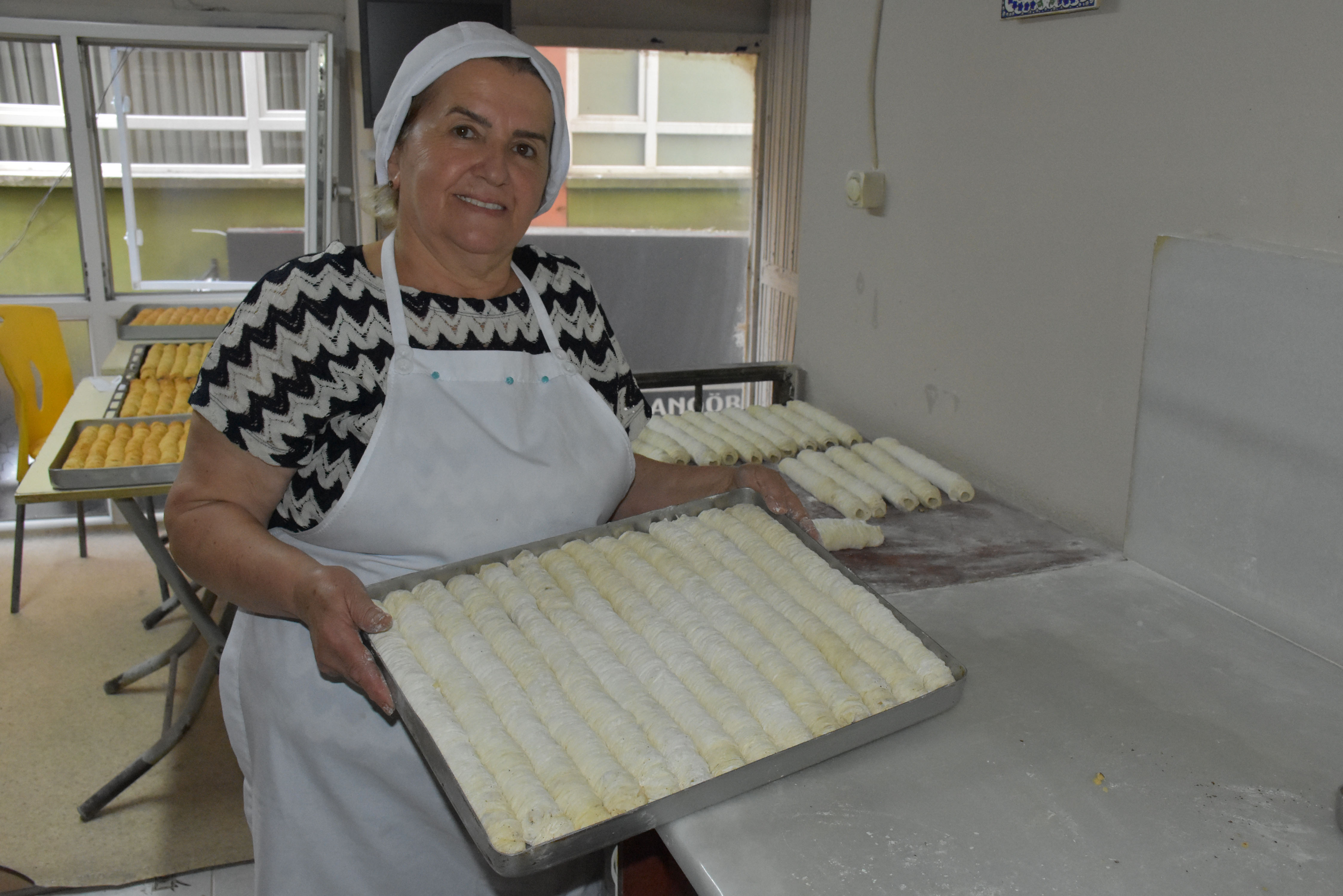 Kadınların işletmeciliğini yaptığı tatlıcılar da bayram dolayısıyla gece saatlerine kadar mesai harcıyor.