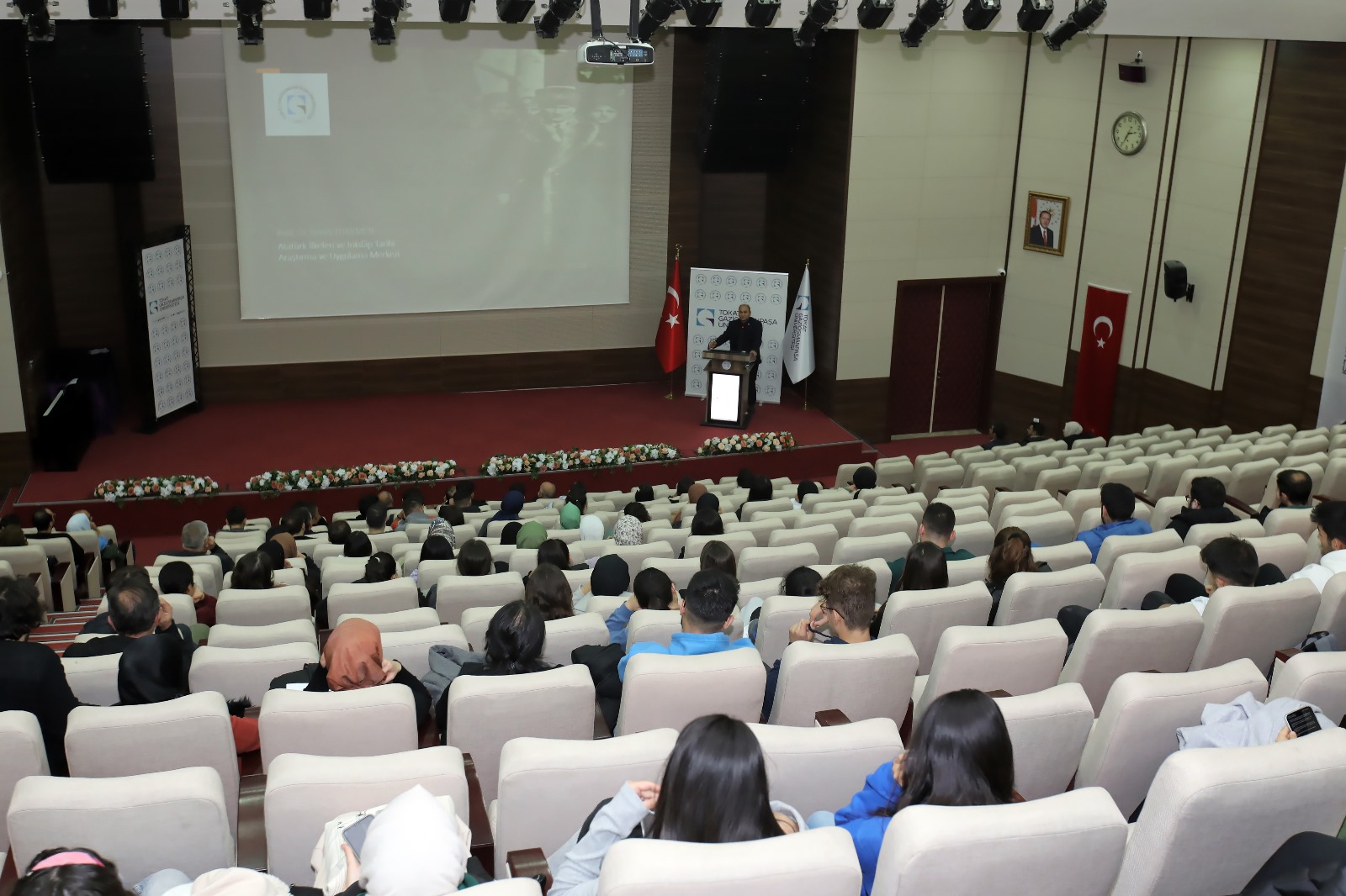 Konferansta, Atatürk İlkeleri ve İnkılap Tarihi Araştırma ve Uygulama Merkezi Müdürü Prof. Dr. İsmet Türkmen konuşmacı olarak yer aldı. Türkmen konuşmasında, dönemin zorluklarından ve şartlarından bahsetti. Mustafa Kemal Atatürk'ün liderlik özelliklerine de değinen Türkmen, ayrıntılı bilgileri dinleyicilere aktardı.