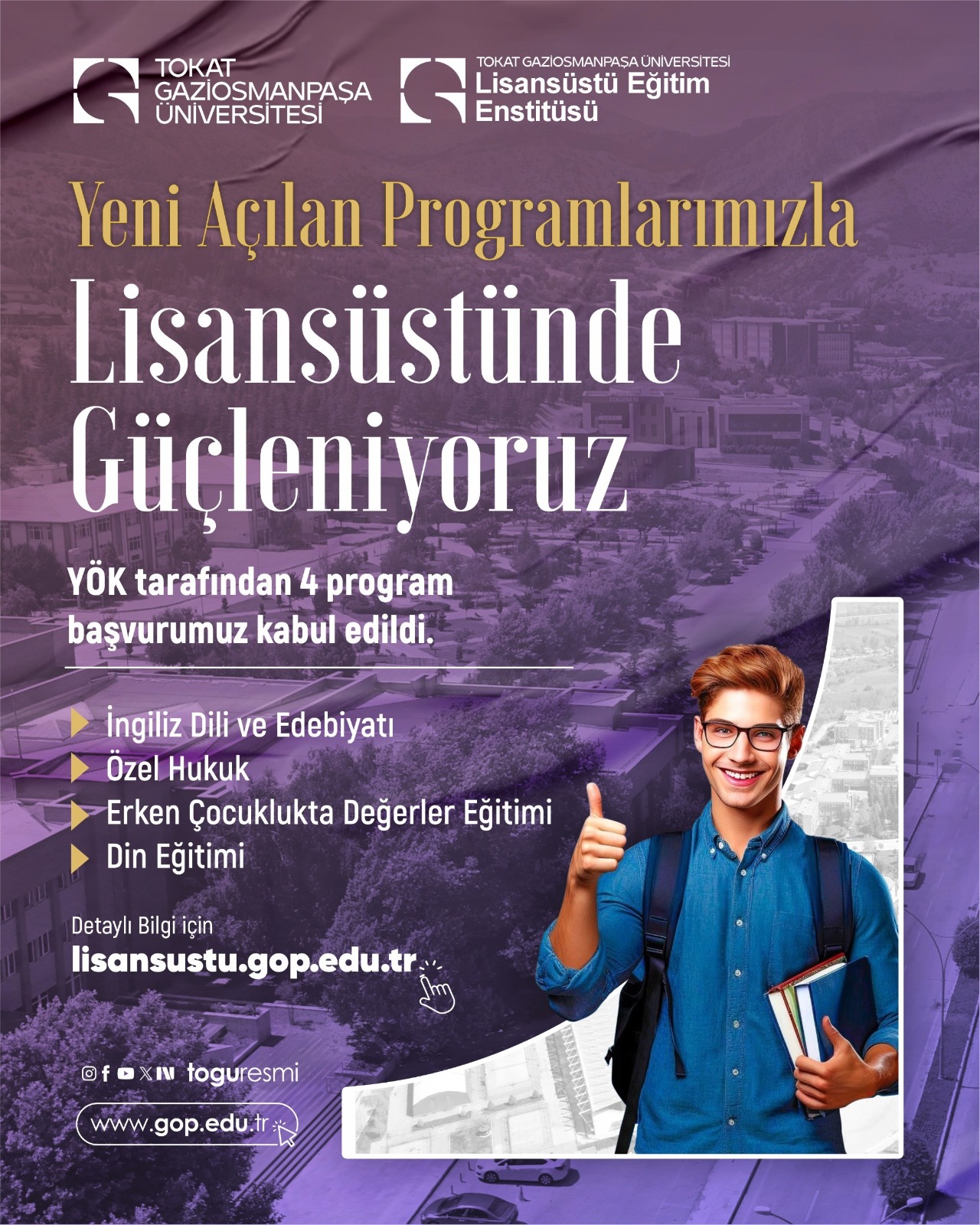 Bu gelişmeyle birlikte Tokat Gaziosmanpaşa Üniversitesi’nin lisansüstü program çeşitliliği artarken, öğrencilere sunulan akademik seçenekler de genişlemiş oldu. Üniversite, artan program yelpazesiyle bilimsel üretimi destekleyen daha kapsayıcı ve güçlü bir lisansüstü eğitim yapısı oluşturmayı amaçlıyor.