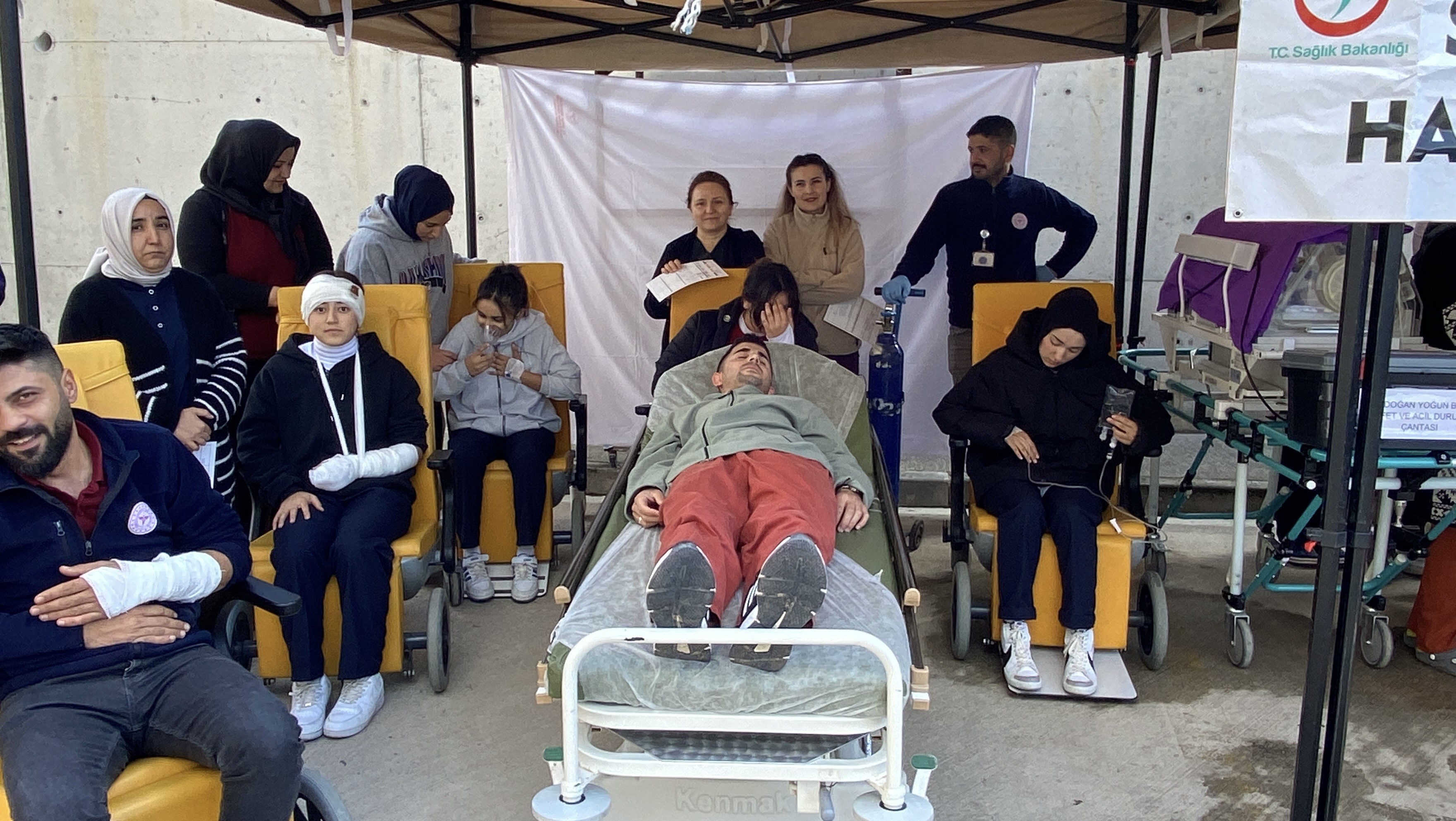 Tatbikat kapsamında Sivas'taki depremin ilçelerindeki hastaneyi de etkilediğini söyleyen Hap Başkanı Amine Hatun Ağırman, “Arkadaşlar öncelikle hepinize geçmiş olsun. Ülkemize ve ilçemize tekrardan geçmiş olsun dileklerimi iletiyorum. Sivas'ın Yıldızeli ilçesi merkez üssü olan 5,7 depremden ilçemizde hasar gördü. Komşu köylerimizde de aldığımız bilgilere göre yıkımlar var ama henüz hastanemize getirilen hastamız olmadı. Hastanemizin de C bloğunda ağır tahribat var. Şu an için hastalarımızın kontrolünü bir şekilde tahliyesini gerçekleştirdik. Apandisit ameliyatı olan bir hastamız var. Doğum salonundan getirdiğimiz bir hastamız var. Yine deprem nedeniyle kalp krizi geçiren ne yazık ki kaybettiğimiz bir hastamız mevcut. Onun dışında şu an için hastanemiz tüm personelimizin ve hastalarımızın güvenli bir şekilde tahliyesini gerçekleştirmiş bulunmaktayız” dedi.