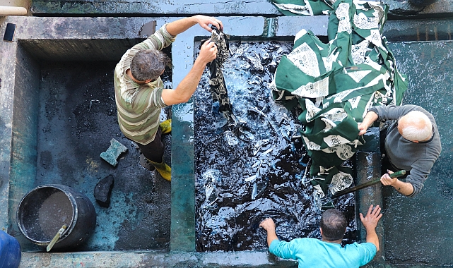 Tokat'ta eski usulle yapılan kumaş boyama işlemi, Hindistan'daki toplu çamaşır yıkama alanlarını andırıyor.