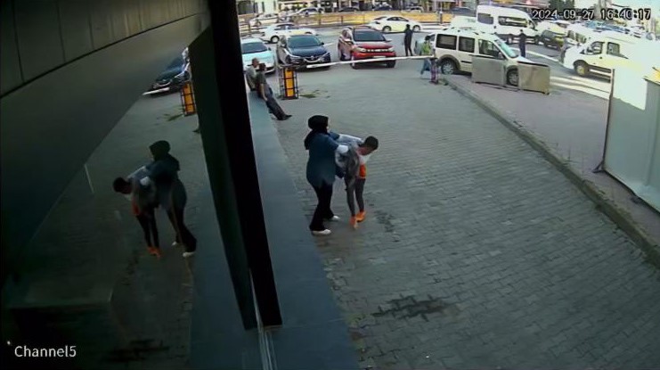 Bir süre küçük çocuğun boğazını sıkan sağlık çalışanı daha sonra yoluna devam etti. Olay bir güvenlik kamerası tarafından an be an kaydedildi.