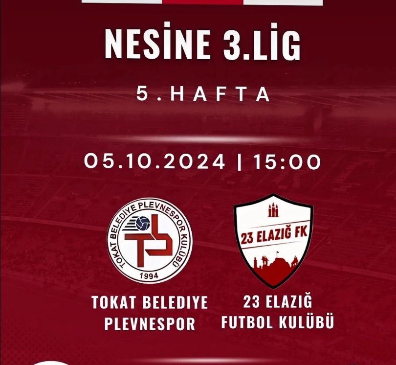 Yeni haftada galibiyet için yüzde 100 konsantre olduklarını belirten Tokat Belediye Plevnespor’un rakibi ise 23 Elazığ F.K. oldu. 5 Ekim 2024 Cumartesi günü (Yarın) Tokat Belediye Plevnespor’un ev sahipliğinde oynanacak karşılaşmanın adresi, Gaziosmanpaşa Stadyumunda olacak. Heyecanlı karşılaşma, saat 15.00’da başlayacak.
