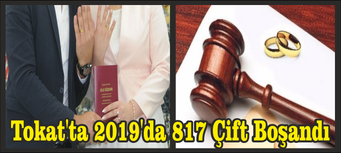TÜİK 2019 yılı Evlenme ve Boşanma İstatistiklerine göre; "Tokat ili, Evlenme ve Boşanma İstatistikleri" açıklandı. Buna göre; 2019 yılında Türkiye'de 541 bin 424, Tokat'ta ise 3 bin 624 çift evlendi, 817 çift boşandı. Boşanmaların yüzde 36,2'si evliliğin ilk 5 yılında gerçekleşti.