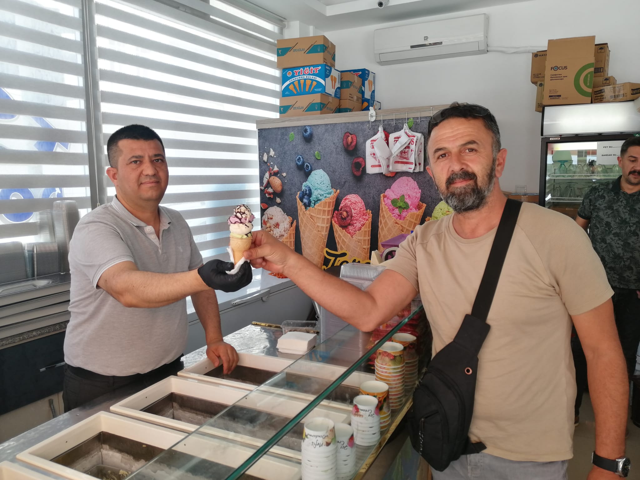 Azmi Özdemir dondurmanın yanı sıra çeşit çeşit tatlılar da müşterilerine sunduklarını belirterek; “Sıcaklardan bunalan serinlemek isteyen herkesi bekliyoruz” diye konuştu.