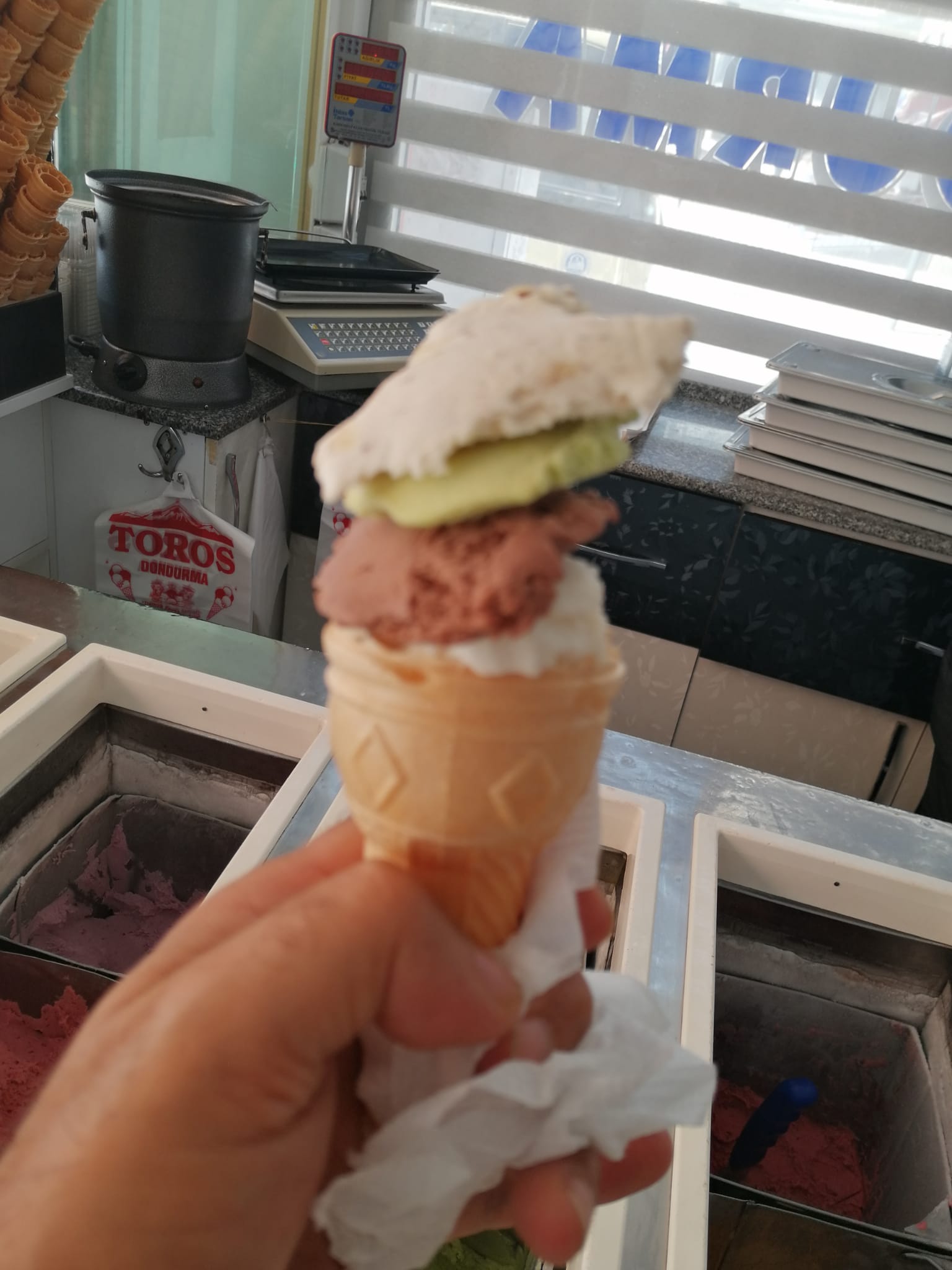 Birçok çeşit dondurmanın satıldığı işyerinde, şimdide meşhur Niksar cevizinden yapılan dondurmalar görücüye çıktı.