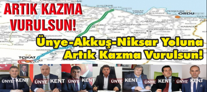 Ordu ve Tokat milletvekillerinin, birlikte ziyaret ettikleri Ulaştırma Bakanı'ndan bir an önce yapılmasını istedikleri Ünye-Akkuş-Niksar yolu ile ilgili olarak siyasi partilerin Ünye İlçe başkanları, yolda bir an önce çalışma başlatılmasına işaret ettiler. Tokatlı milletvekillerini de katarak yapılan ziyareti olumlu bulduklarını belirten ilçe başkanları, bu ziyaretin sözde kalmaması gerektiğini ifade ederek, yolda artık kazma vurulmasını istediler. Ünye-Niksar arasındaki ulaşımın asıl bölünmüş yolla rahatlayacağını belirten başkanlar, bu yolla ilgili taleplerinin sürdüğünü, mevcut yolda başlatılması istenen çalışmayı ise bölgedeki yerleşim alanları için önemli gördüklerini ifade ettiler.