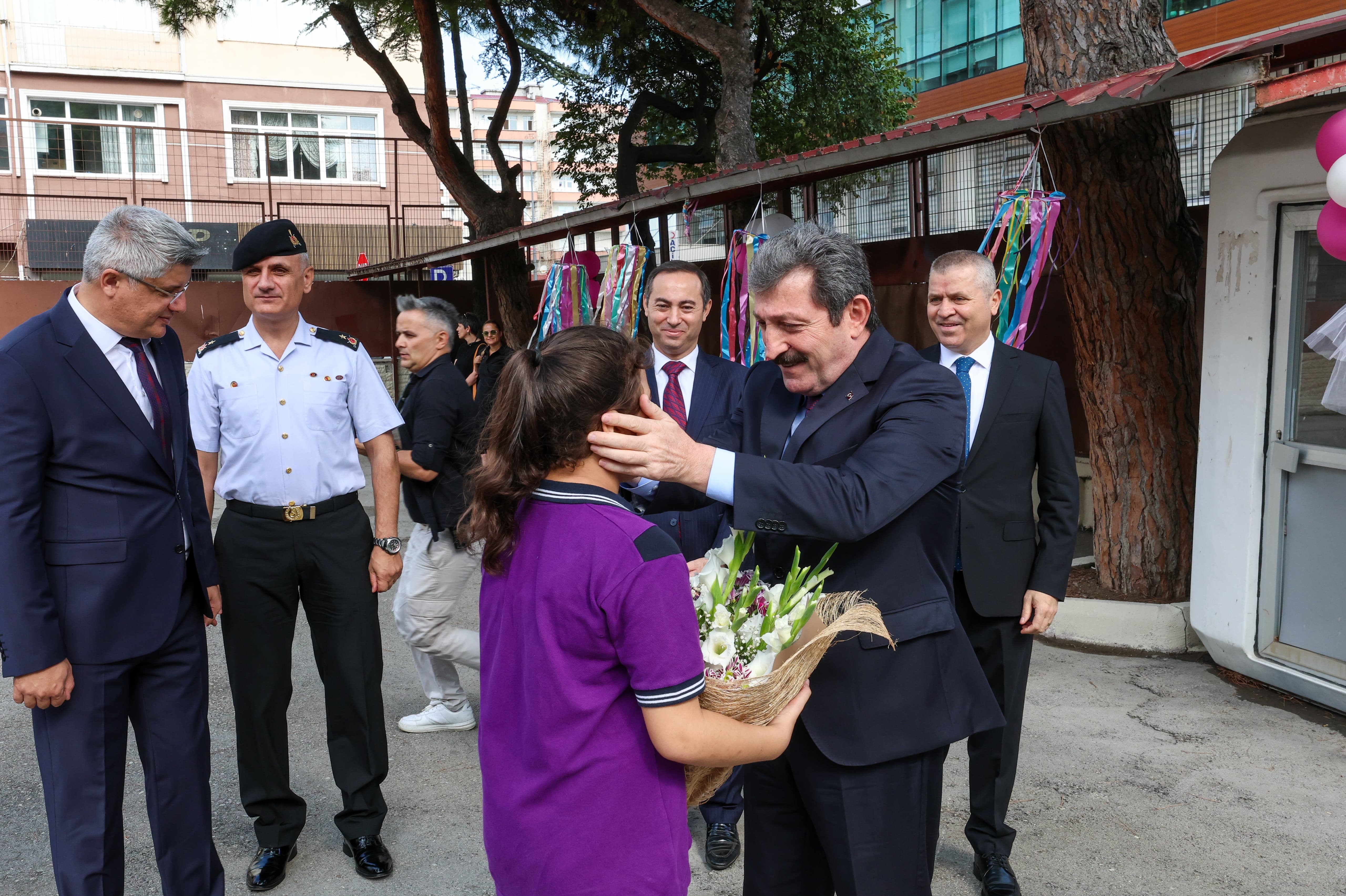 Samsun Valisi Orhan Tavlı, beraberinde İlkadım Kaymakamı Abdulkadir Demir, Atakum Kaymakamı Kemal Yıldız, İl Jandarma Komutanı Tuğgeneral Mustafa Bakçepınar, İl Emniyet Müdürü Ahmet Arıbaş, İl Milli Eğitim Müdürü Dr. Murat Ağar ve protokol üyeleriyle birlikte İlkadım Atatürk Ortaokulu’nda düzenlenen 2024-2025 Eğitim-Öğretim Yılı İlköğretim Haftası Kutlama Töreni'ne katıldı. 3 aylık yaz tatilinin ardından sınıflarına ve öğretmenlerine kavuşan öğrencilerin heyecanına ortak olan Vali Tavlı, öğrencilere dest kitaplarını da dağıtarak, yeni eğitim döneminde başarılar diledi.